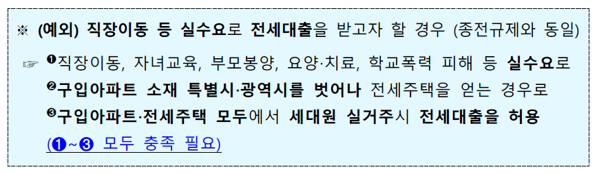 4. 전세대출 회수 예외 조건 (직장이동, 자녀교육, 부모봉양 등)