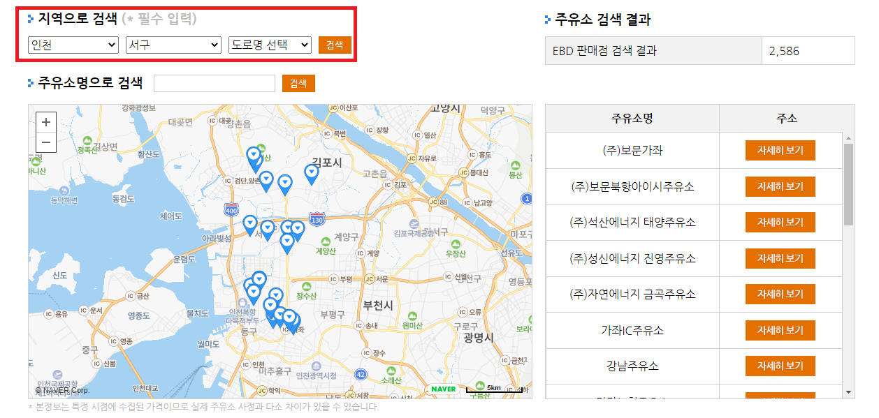3. 다른 지도 어플(네이버지도, 카카오지도 등)을 이용하여 해당 주유소에 요소수 보유 여부를 확인한다.