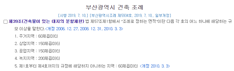 2. 토지만 소유하고 있을 경우에는 부산시 건축 조례의 제39조에서 평시한 면적 이상인 자