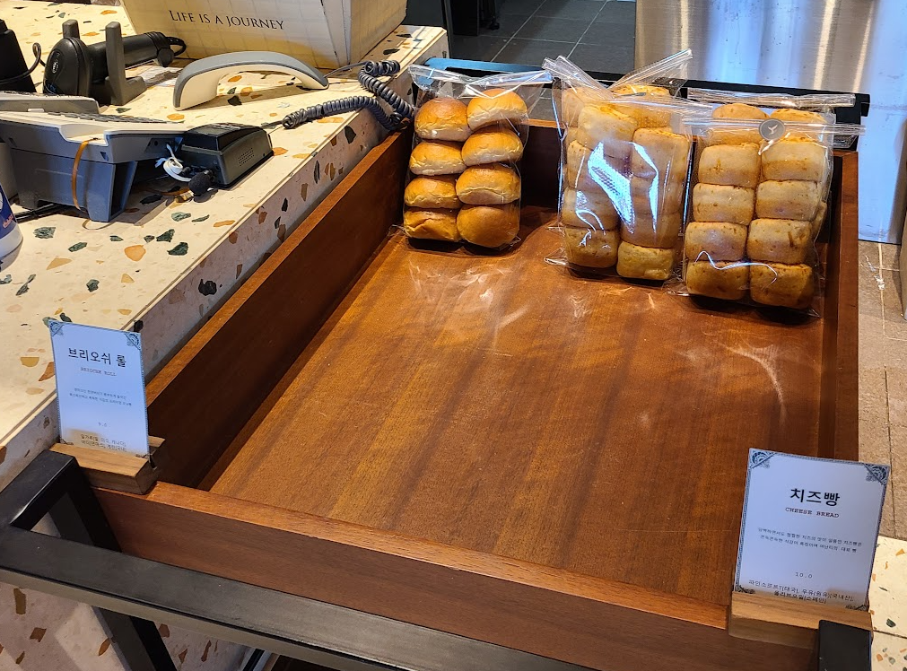 그리고 여기 살롱 드 이터널저니 카페라고 빵집도 있는데, 저기 보이는 치즈빵이 특히 유명하다고하니 꼭 맛보시고 오세요~ 따끈따끈한 새빵 나오는시간은 '오후 2시' 이니 체크인하고 바로 가시는게 좋습니다. 가끔 매진되거든요..