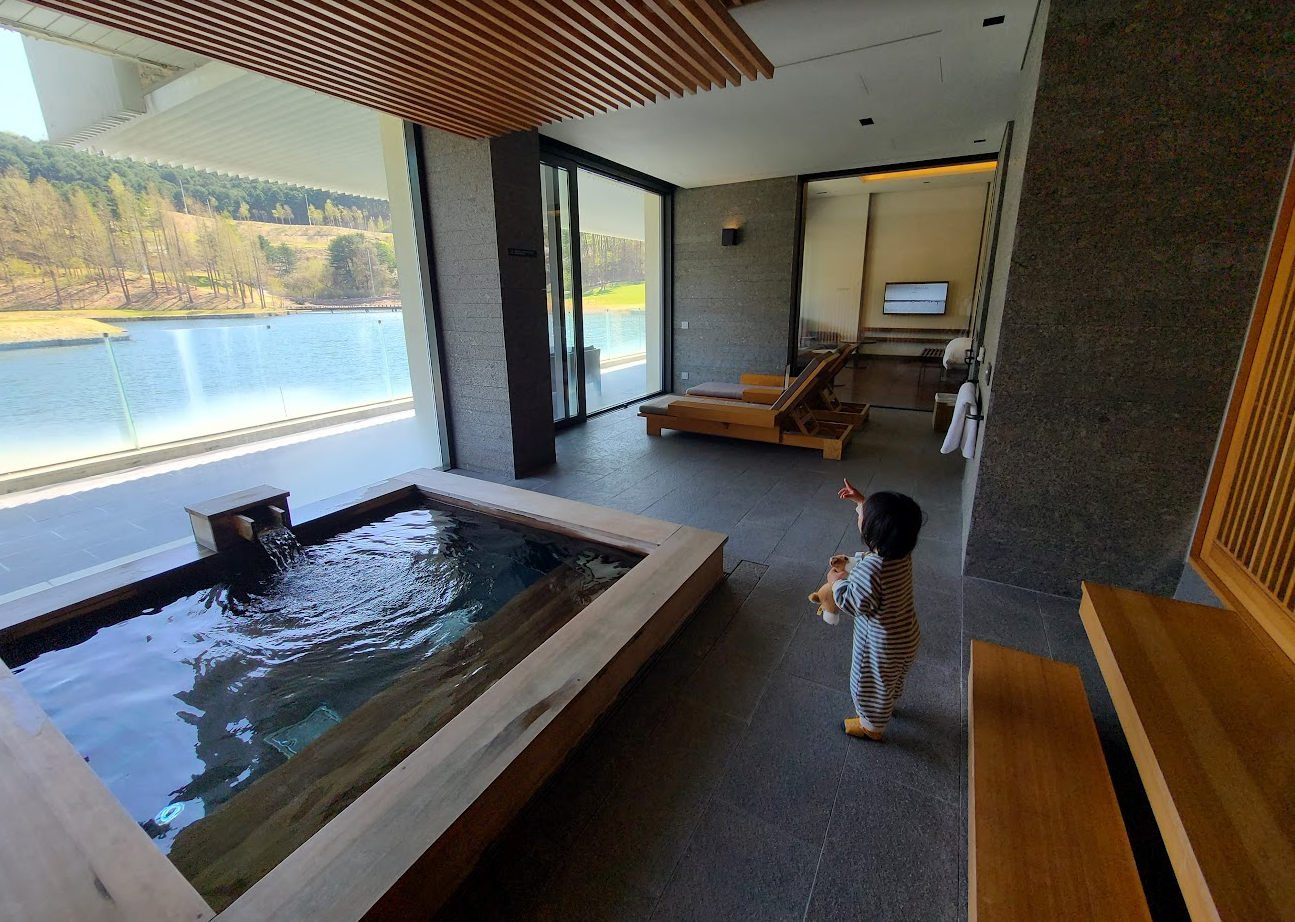 그리고 일찍 주무시거나 할 경우에는 저 히노끼탕의 물 나오는 소리가 거슬릴 수 있는데요, 그럴땐 프론트에 전화해서 꺼달라거나 늘려달라고 하면 늘려줍니다. 최대 10시까지인가로 알고있습니다. 저희는 아기가 8시에 자기때문에 미리 좀 꺼달라고 부탁 드렸었습니다.