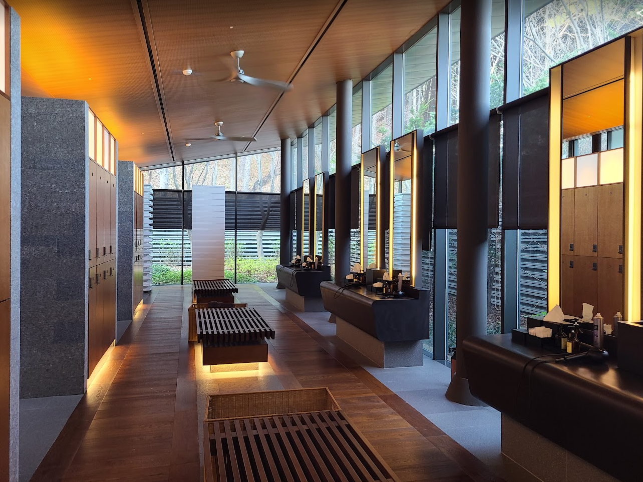 히노끼 탕에 앉으면 이런 느낌인데 호수와 맑은 하늘을 보며 반신욕을 즐기다가 옆에 준비된 데이베드에서 휴식을 취하는게, 이게 진짜 휴식이구나 느낄 수 있었습니다.