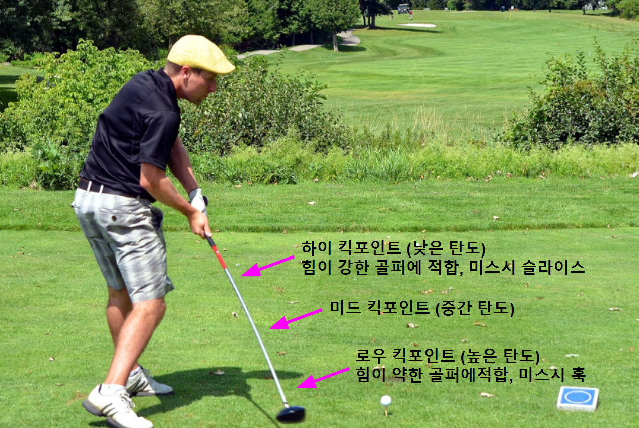 헤드스피드가 느린경우 : 부드러운 느낌으로 스윙하지만 비거리를 늘릴 수 있는 로우 킥포인트로 고른다.