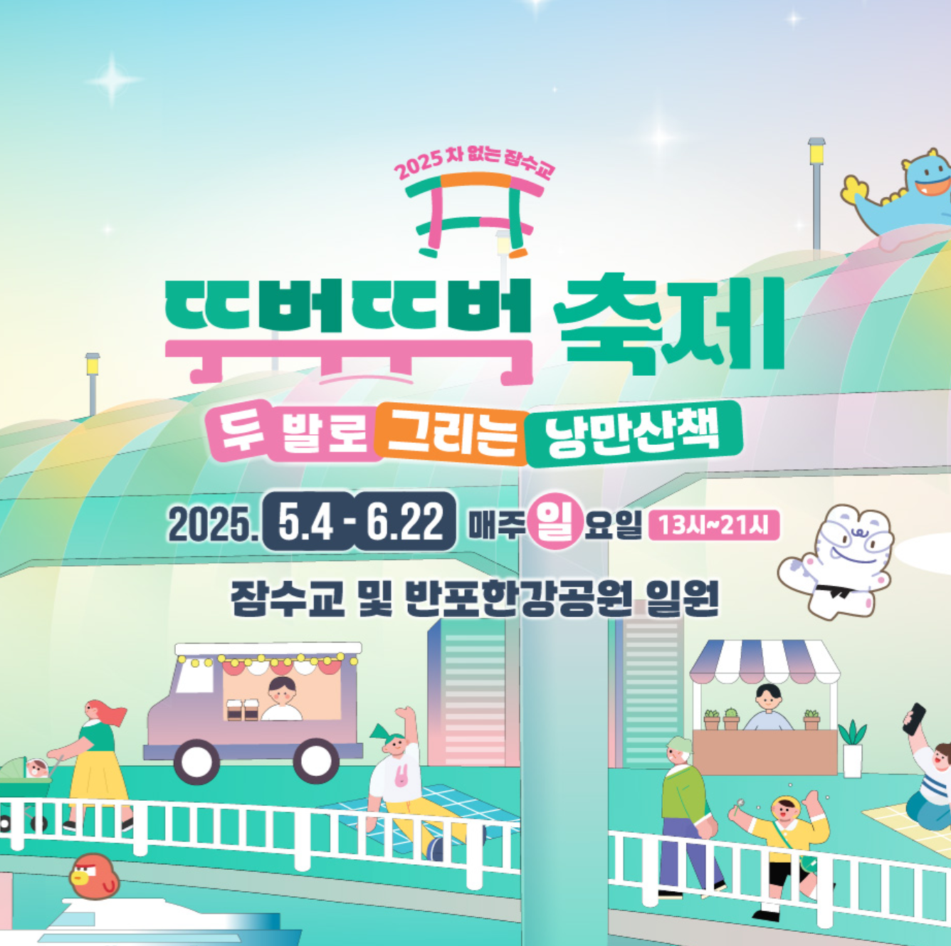 - 추천 이유: 잠수교 구간을 차량 통행 없이 보행자 중심으로 개방하여, 시민들이 안전하게 도보를 즐길 수 있도록 구성된 축제입니다. 자연과 예술이 어우러진 다양한 프로그램을 통해 서울의 봄을 만끽할 수 있는 특별한 경험을 선사합니다.