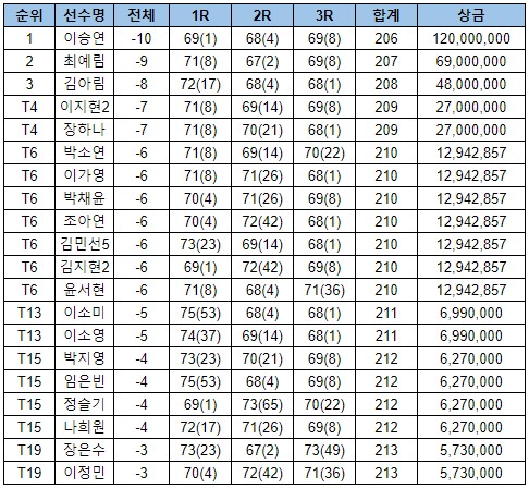 [KLPGA] 2019 넥센 세인트나인 결과 순위