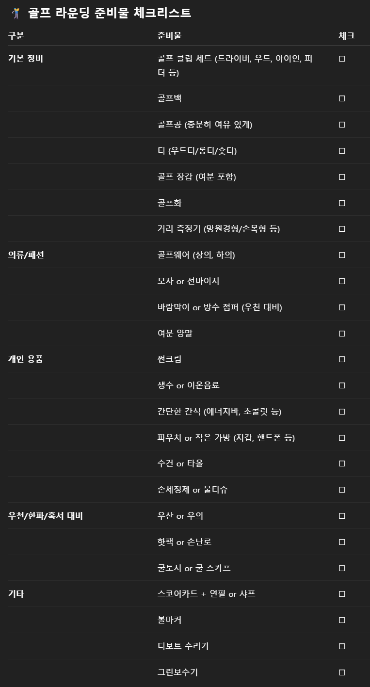 하나씩 꼼꼼히 챙기면 당황 없이 여유 있게 라운딩할 수 있어요! 화이팅!
