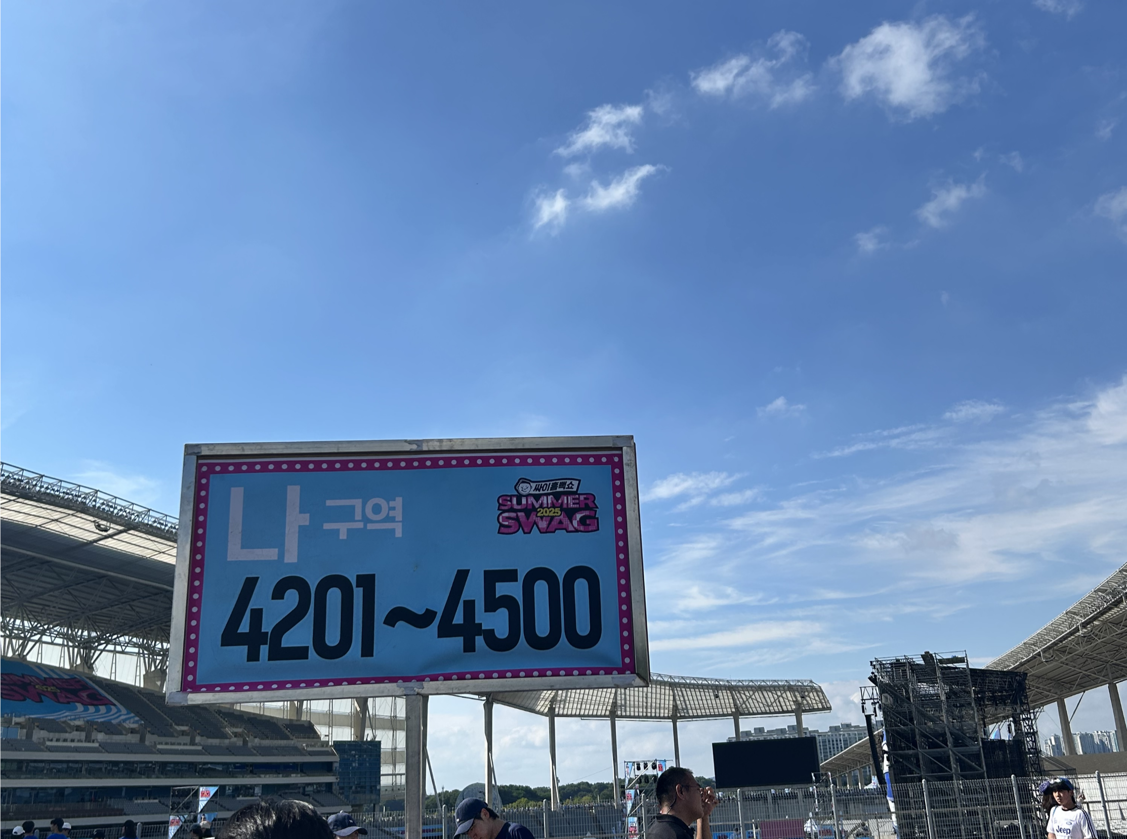 저는 이번 싸이 흠뻑쇼는 인천 아시아드 경기장, 나구역 4000번대 좌석에서 관람했어요.