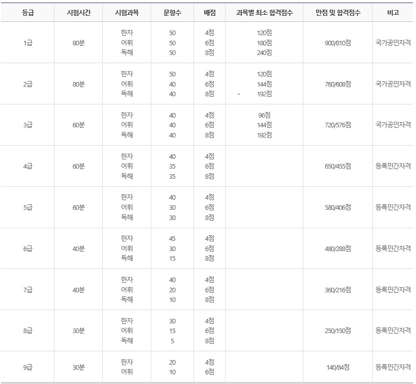 2~3급 : 전과목 60% 이상 득점해야함