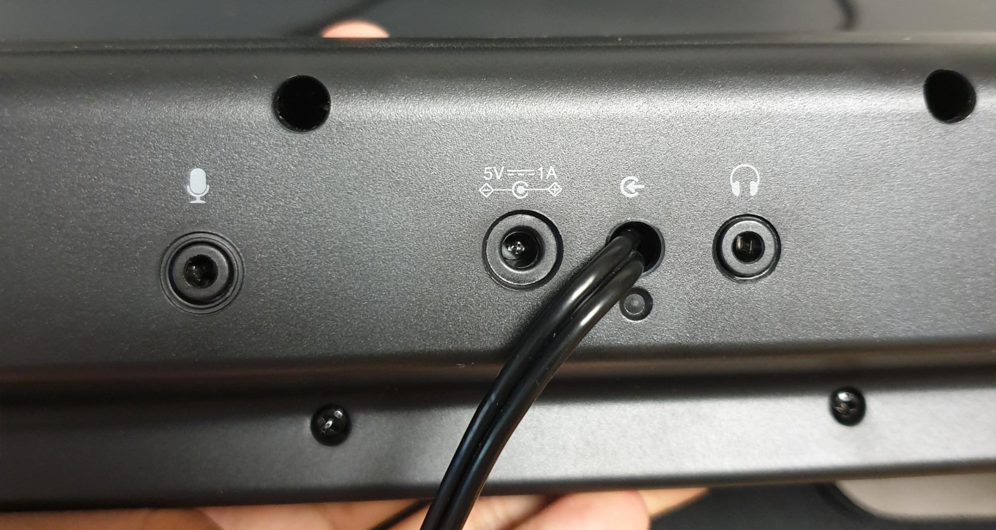 그리고 많은 분들이 불편하다고 지적하고 계시는 헤드셋과 마이크 단자가 뒤에 있다는 점인데요..