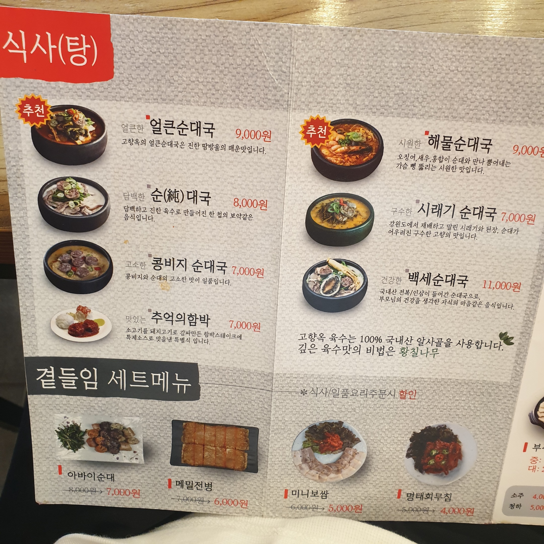 메뉴가 다른 순대국 집에 비해 조금 다양하다는 점도 이 식당의 강점이라고 볼 수 있는데요. 특히 '해물 순대국', '시래기 순대국' 등 한번 먹어보고 싶은 메뉴들이 정말 많았습니다.
