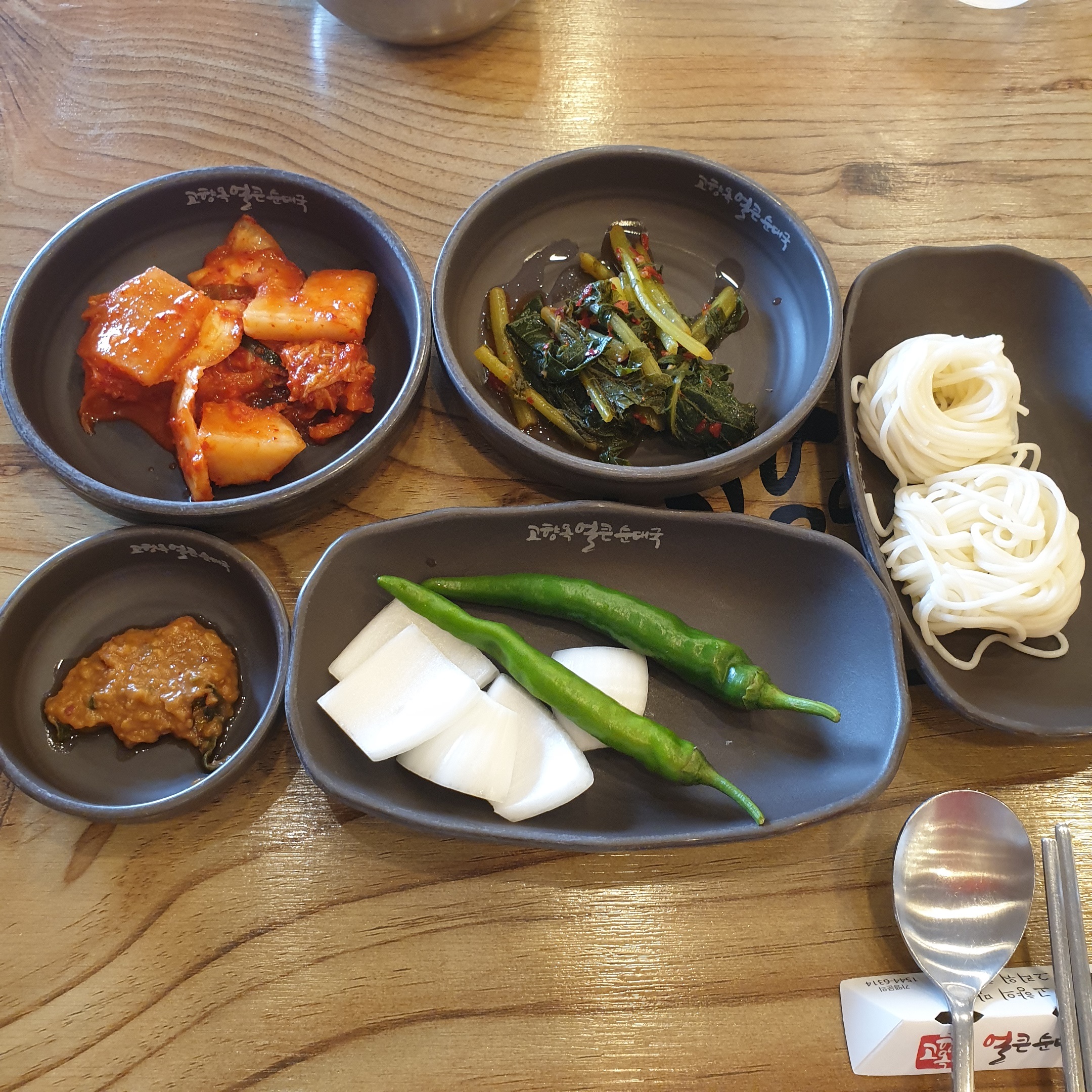 메뉴를 고르고 주문을 하시면 이렇게 상차림이 준비 되는데요. 제가 주문한 메뉴는 얼큰 순대국과 기본 순대국입니다.