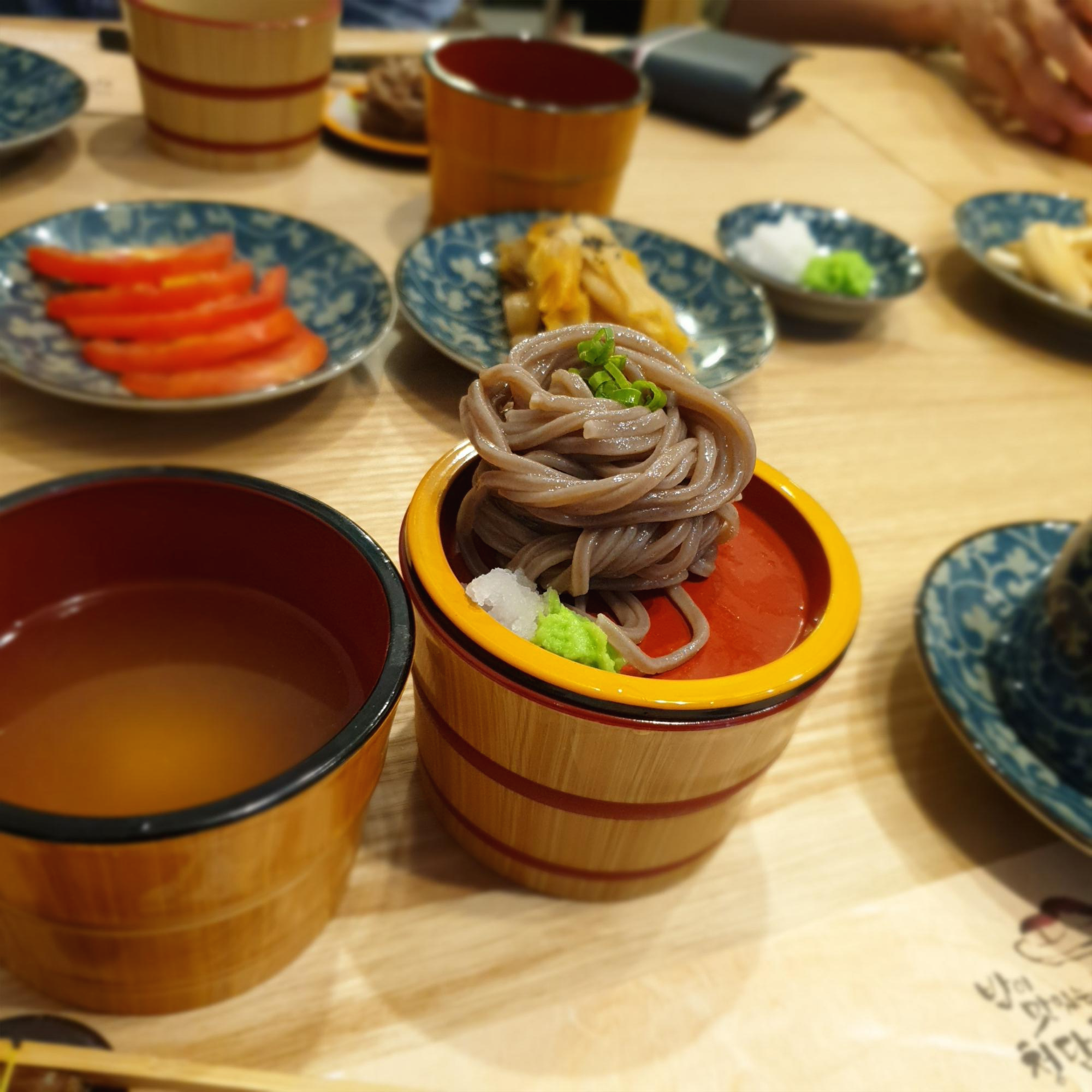 그리고 이렇게 소바부터 오마카세 메뉴가 시작되는데요. 저 면이 있는 뚜껑을 열면 밑에 육수가 나오게 됩니다. 개인적으로 와사비를 많이 넣어서 먹는게 제일 맛있더라구요. 조금씩 드셔보시면서 와사비 추가하셔서 드시면 됩니다.