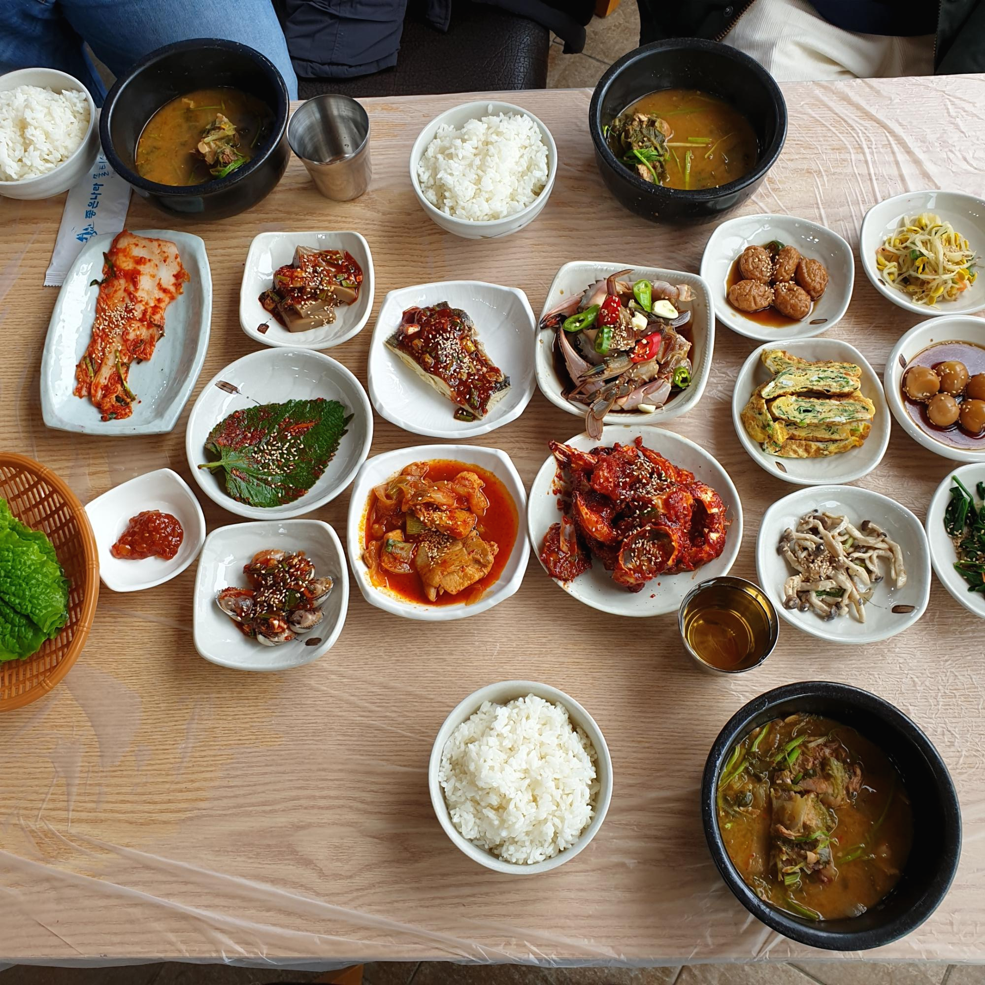 한가지 좋은점은 이렇게 차려져 있는데도 불구하고 더 필요하시면 반찬들을 다 다시 채워주신다는점입니다.