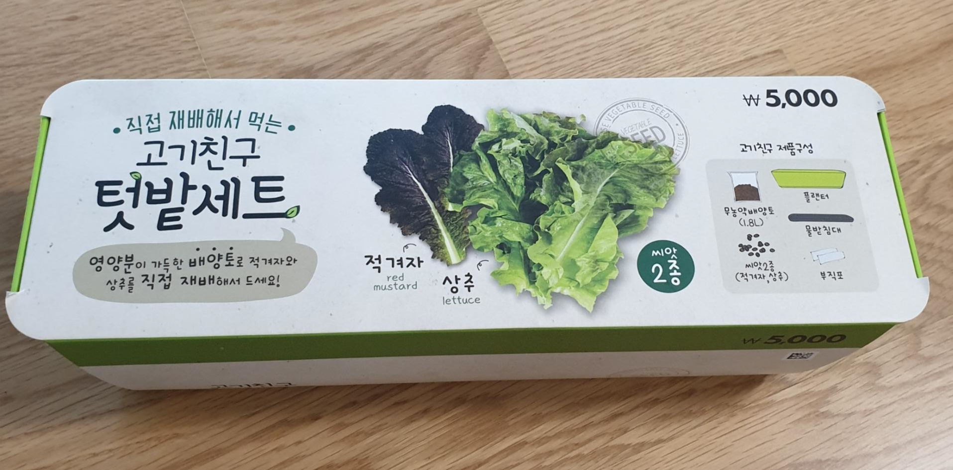 이 키트는 적겨자와 상추를 직접 재배해서 먹어 볼 수 있는 키트인데요.