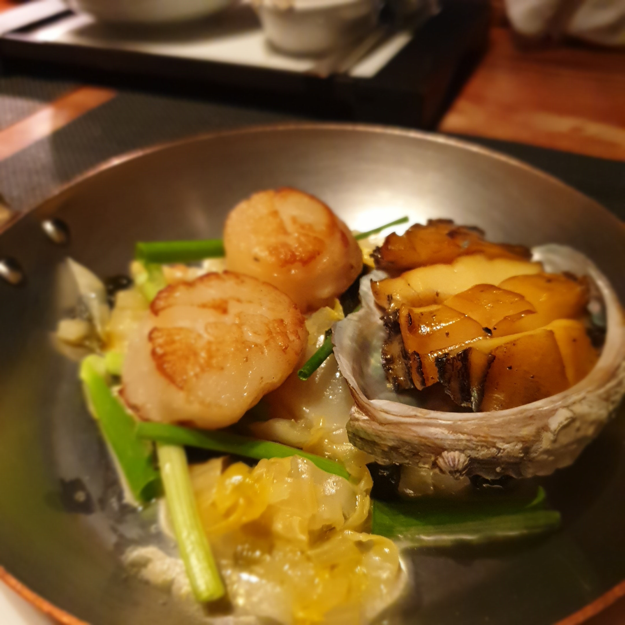 그리고 이어서 나온 팬에 구운 관자와 전복입니다. 허브 버터에 구워서 향으로 먼저 자극 해주시구요. 그리고 곁들여진 묵은지와 같이 먹으면 부드러운 관자에 아삭한 식감이 더해져서 정말 맛있었네요. 전복은 두말할 것도 없구요.