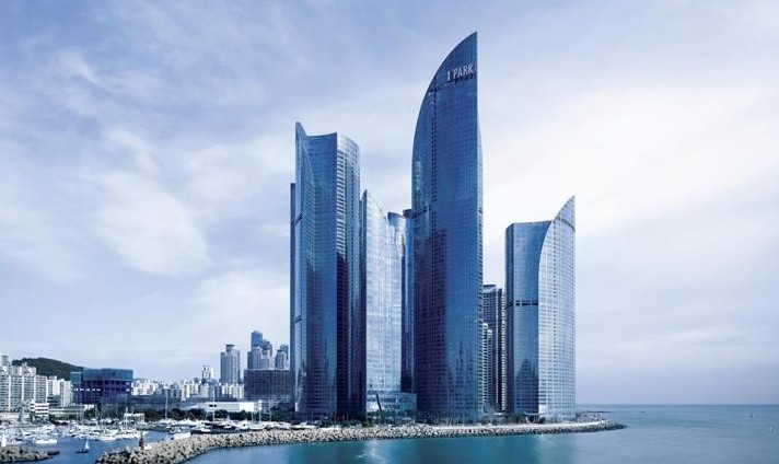 파크 하야트 호텔은 마린시티의 높은 빌딩 숲 사이 아이파크 아파트에 있는데요. 거주민들이 거주하는 타워동 세 개 외에 호텔 건물이 제일 앞에 나와 있습니다.