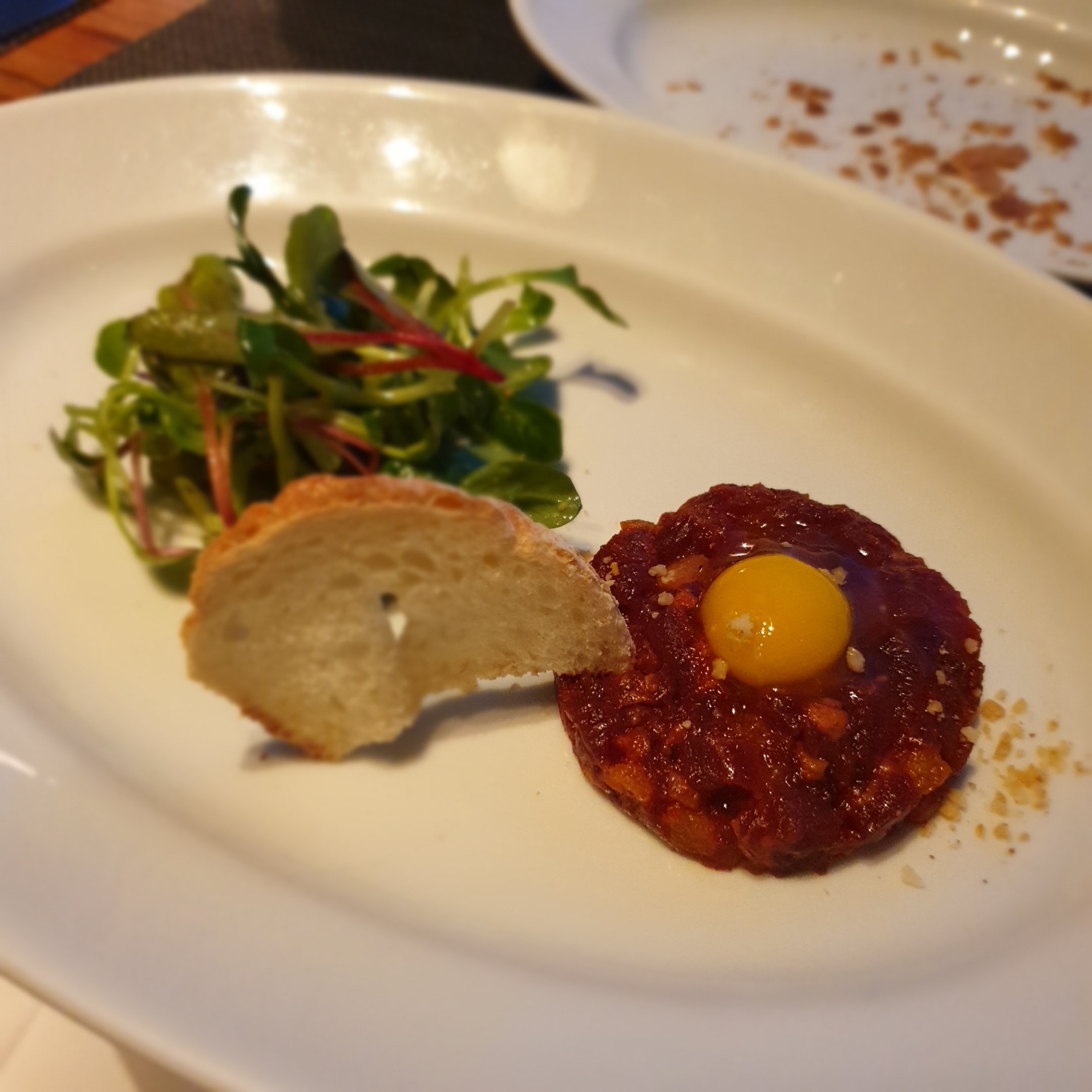 그리고 뒤이어 나온 '국내산 한우 육회' 에피타이저이구요. 바삭바삭한 바게트와 샐러드를 같이 곁들여서 먹으면 한국의 맛을 느끼실 수 있습니다.