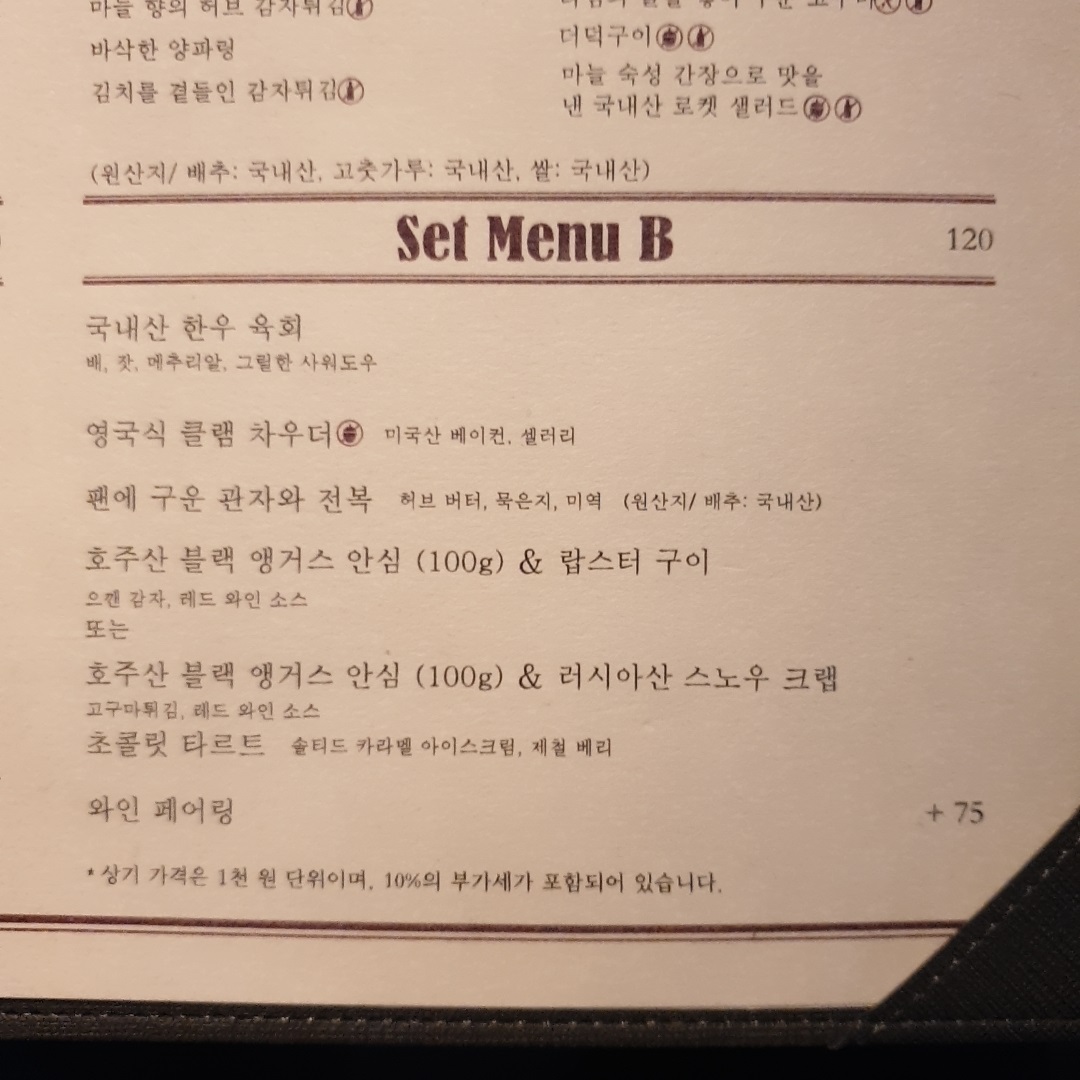 여기서 저희가 고른 메뉴는 바로 Set Menu B 입니다.