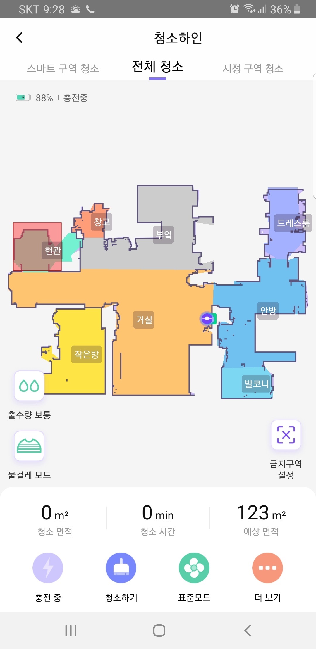 생각보다 '스마트 구역 청소' 를 자주 쓰게 되는데 청소 하고싶은 부분은 세분화 해서 해놓으면 돌릴때 구역 설정하기 편하실 겁니다. 물론 지정 구역 청소도 가능하지만 매번 바꿔줘야 해서 귀찮거든요.