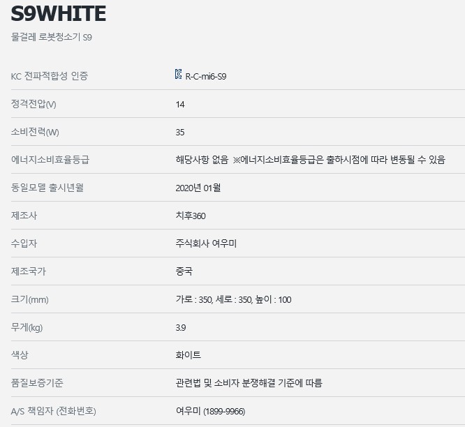 치후 360은 버전을 S 로 나눠서 구분을 하는데요. 위에 보시면 2020년 1월에 출시한 따끈따끈한 신제품임을 아실 수 있습니다. S9 에서 달라진 점이라면 물통의 용량이 커지고 AI 청소 궤적 최적화 등이 있겠는데요. S6 이후부터 물걸레 기능을 지원하니 이전 버전을 구입하실 예정이었던 분들은 스탑!