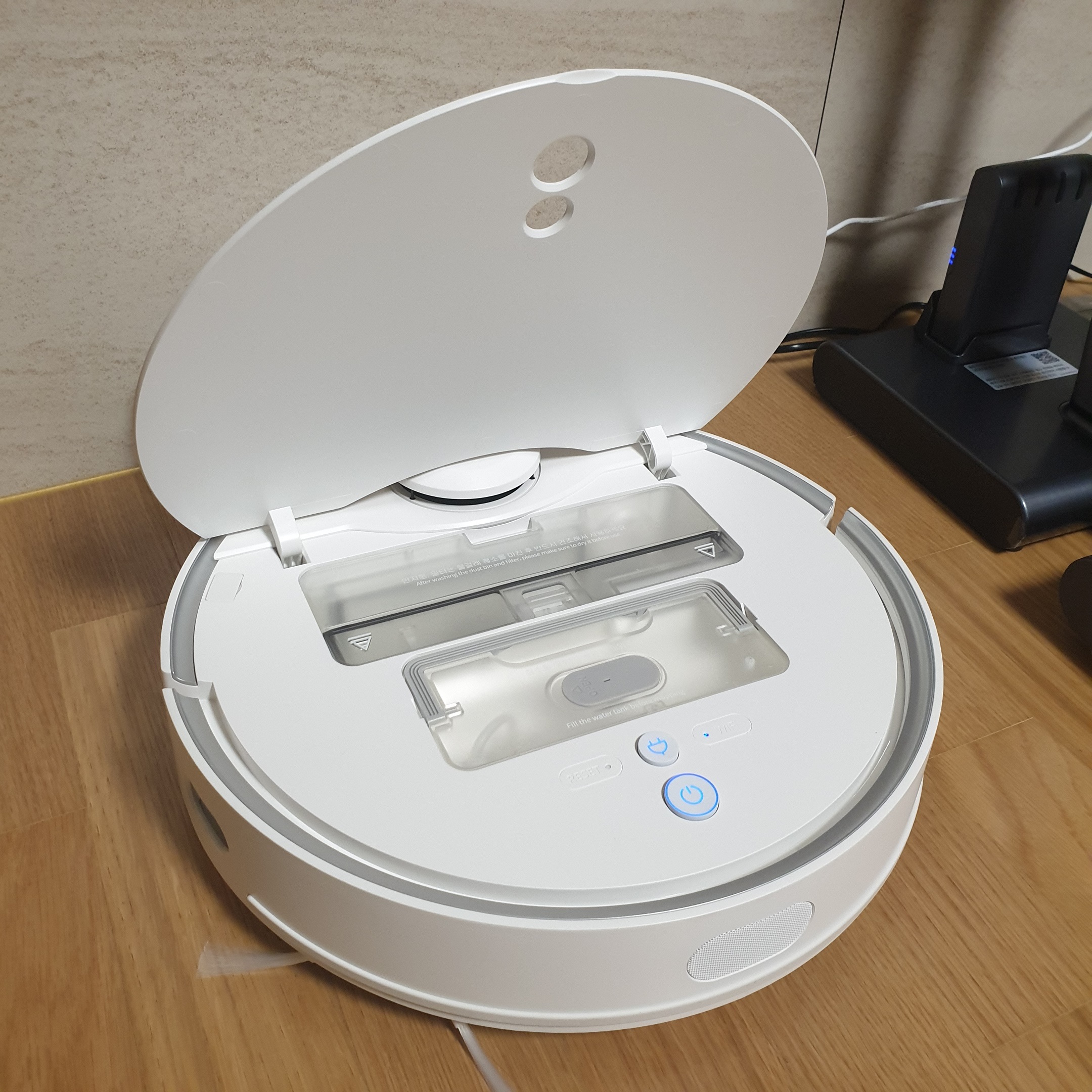치후의 안쪽면을 살펴보곘습니다. 저 뒤에 보이는게 먼지통이구요. 그 앞쪽에 있는게 물걸레용 물통입니다.