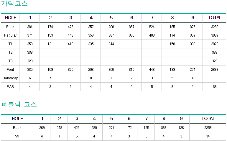 홀스 : 회원제 45홀 + 대중제 9홀