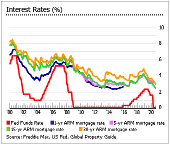 30년 만기 고정금리 모기지(FRM)의 평균 금리는 2020년 8월 2.94%로 2019년 8월 3.62%, 2018년 8월 4.55%에 비해 낮아졌다.