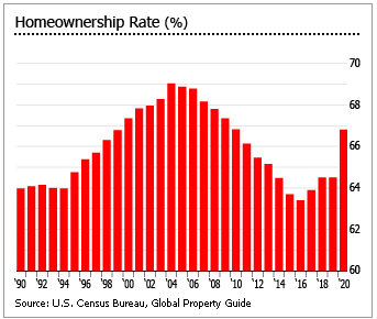 부동산 가격이 계속 상승했음에도 불구하고, 3년간의 성장 후에, 주택 소유는 2019년 상반기에 계속 상승하고 있습니다. 미국 인구 조사국에 따르면 2020년 2분기 미국의 주택 보유율은 67.9%로 전분기(65.3%)와 전년 동기(64.1%)에 비해 크게 증가했다. 사실 그것은 2008년 2분기 이후 가장 높은 수준이었다.