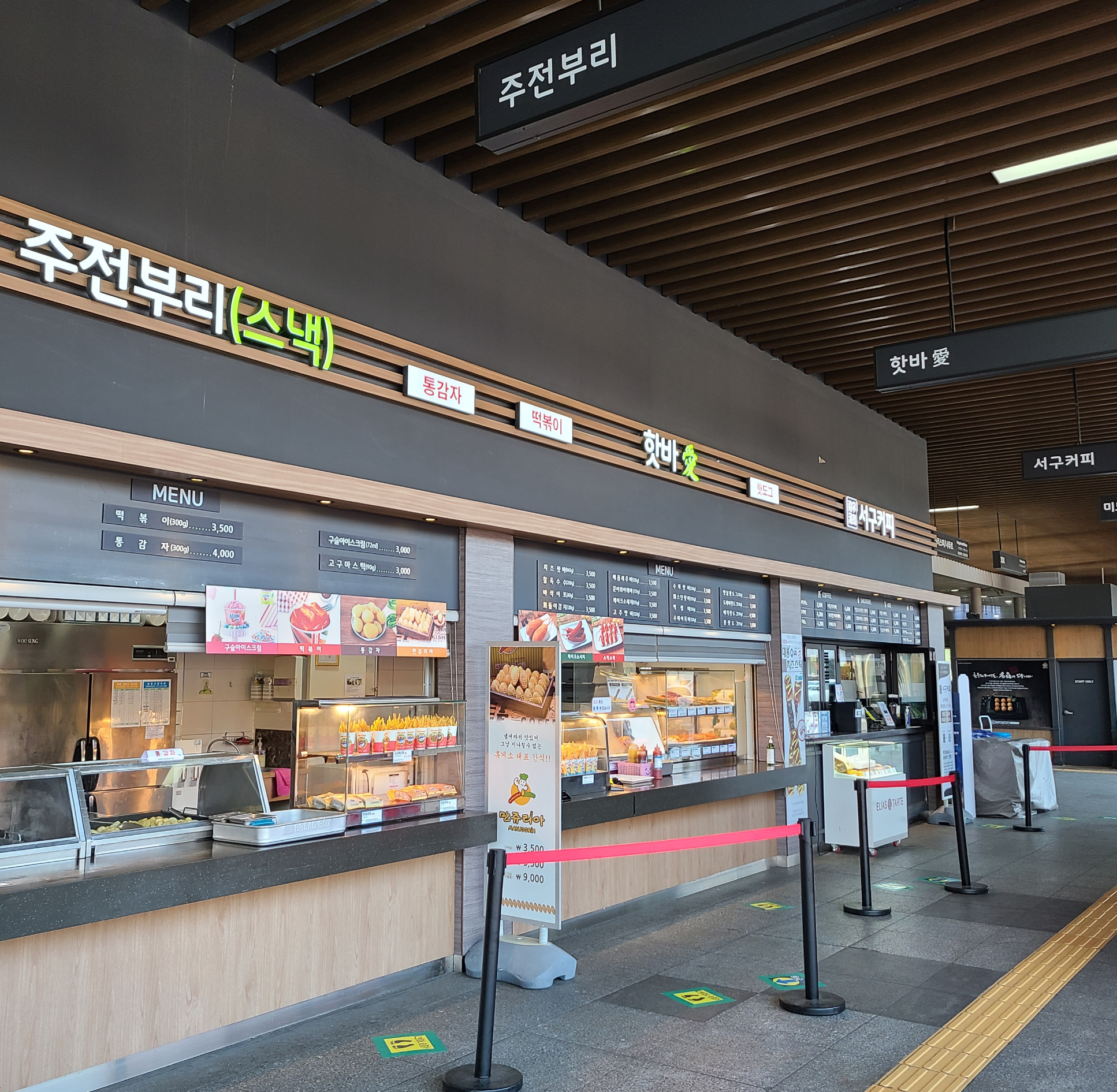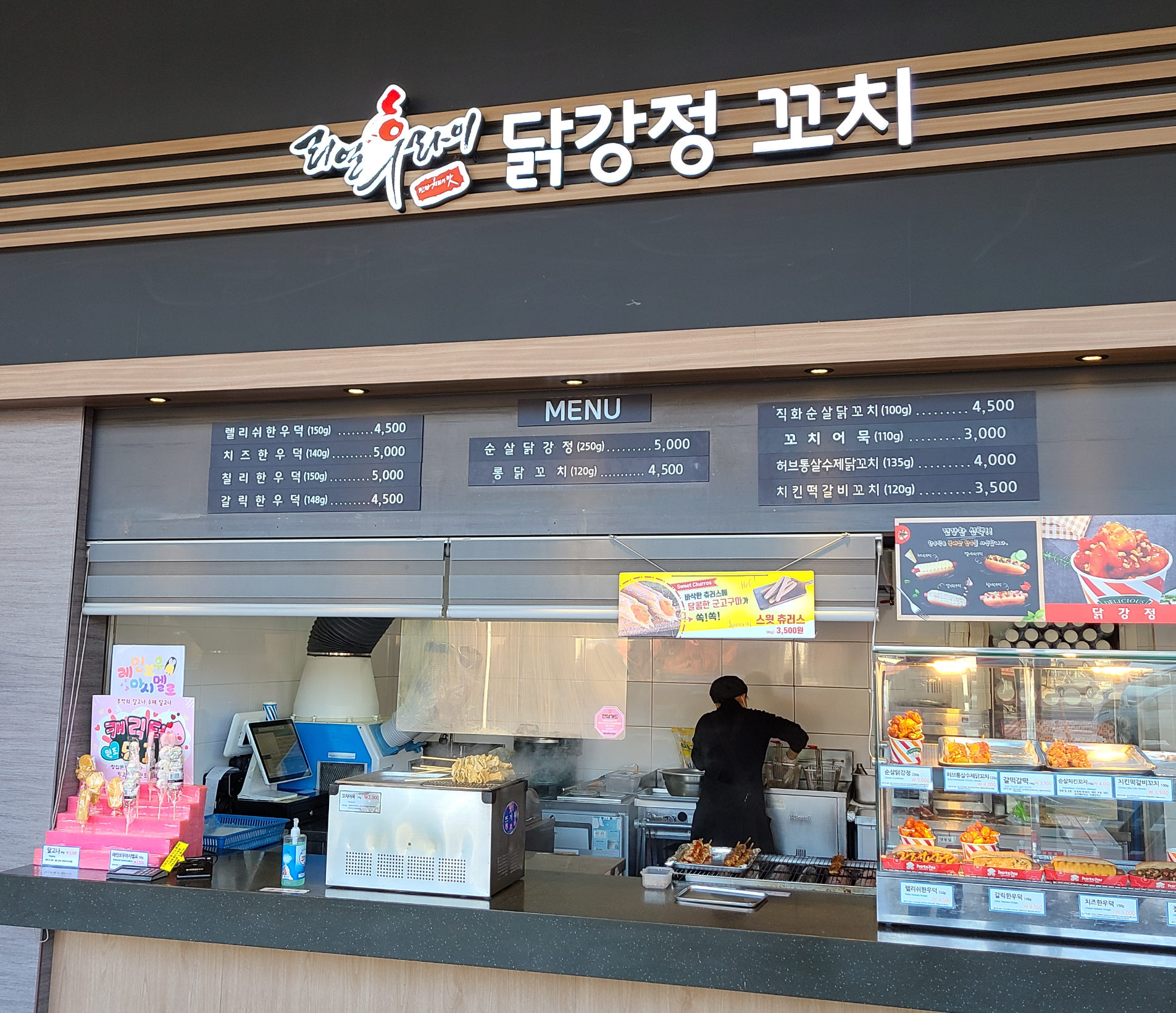 CJ 푸드빌이 운영했었어서 그런지 일단 시설 깰꼼하구요. 요로코롬 닭강정 꼬치도 팔고 덕이라고하는 핫도그 비스무리 하게 생긴 것도 팔더라구요. 한우Dog 인듯?ㅋㅋㅋㅋ