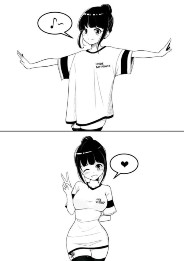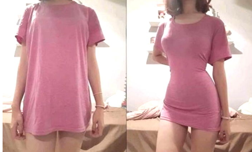 아래 사진에서 보시듯이 박시한 옷을 입을때는 몸매가 드러나지 않다가 딱 붙여버리면 숨겨진 몸매가 드러나게 되죠.